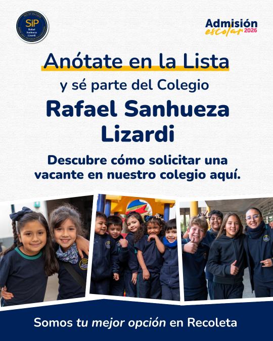 Con más de 75 años en el corazón de Recoleta, en el colegio Rafael Sanhueza Lizardi educamos con excelencia con un fuerte enfoque en la formación integral, con el fin de que niños, niñas y adolescentes reciban las herramientas que les permitan cumplir sus sueños y alcanzar sus metas.